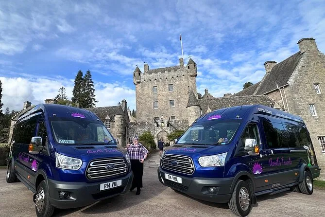 Il tuo giorno include il pick-up e il ritorno proprio ai cancelli del porto di Invergordon, con una guida autista scozzese che ti accompagna tra il campo di battaglia di Culloden, Clava Cairns, i giardini del Castello di Cawdor (o Urquhart se necessario), la vista sul Loch Ness, più acqua in bottiglia lungo il percorso, per tornare comodamente a bordo di un minibus climatizzato nel primo pomeriggio.