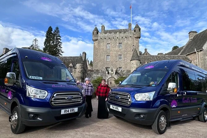 Il tour include Castello e giardini di Cawdor (o Urquhart se chiuso), Clava Cairns, campo di battaglia di Culloden, Loch Ness e visita alle mucche Highland.