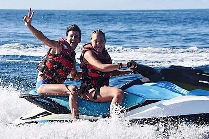 Sali su un jet ski ad Anfi del Mar e sfreccia lungo la costa di Gran Canaria con guide locali che rendono la sicurezza semplice. Impara i consigli base prima di partire, senti la brezza marina mentre superi spiagge e calette rocciose, e goditi il supporto continuo anche se è la tua prima volta.
