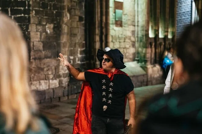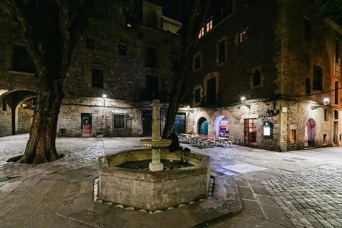 La tua serata include un tour a piedi di 90 minuti nel Quartiere Gotico di Barcellona con racconti di fantasmi e leggende narrati dalla tua guida locale. Inizi e finisci in un bar accogliente dove puoi prendere un drink o cenare prima di tornare a esplorare la notte.