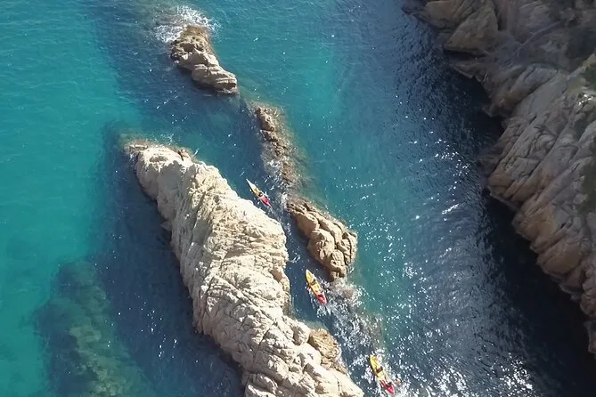 Il tuo giorno include trasporto privato andata e ritorno in pullman da Barcellona centro a Lloret de Mar sulla Costa Brava, uso di tutta l’attrezzatura per kayak e snorkeling (con muta se serve), deposito bagagli e spogliatoi in spiaggia, assicurazione con barca di soccorso, tre ore di kayak guidato con possibilità di tuffi dalle scogliere accompagnati da una guida locale che racconta storie, un picnic con prodotti locali e acqua in bottiglia vista mare — e foto digitali gratuite così non devi preoccuparti del telefono mentre ti godi l’avventura.