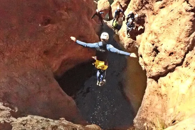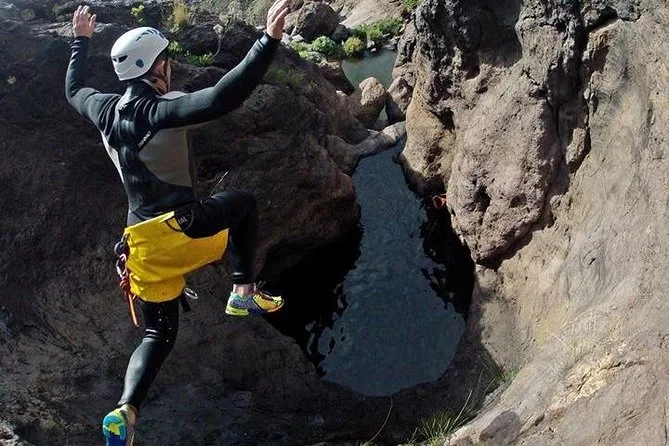 Ti arrampicherai tra canyon vulcanici di Gran Canaria con una guida certificata, scenderai in corda doppia lungo cascate, assaggerai snack locali durante l’avventura e scoprirai come questi paesaggi selvaggi si sono formati. Aspettati risate, acqua fredda sulla pelle e storie da raccontare anche dopo esserti asciugato.