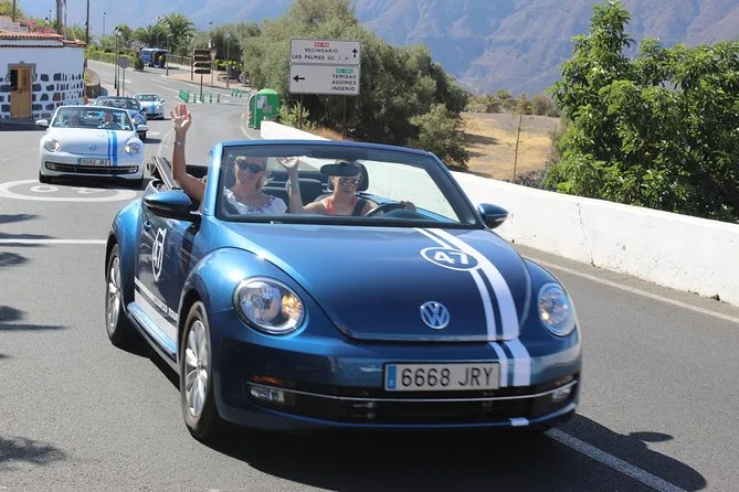 Il tuo giorno prevede la guida autonoma di un classico VW Beetle cabrio attraverso le montagne panoramiche di Gran Canaria con una guida locale. Visiterai siti storici come La Fortaleza de Ansite e villaggi canari autentici come Fataga e Santa Lucia. Ci sarà anche una visita interattiva a una fattoria di aloe vera e un ricco picnic canario con papas arrugadas, mojo, panini e bevande prima di scendere attraverso le valli tortuose.
