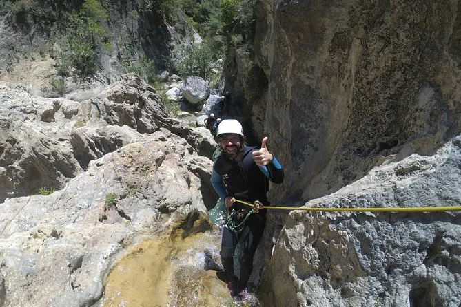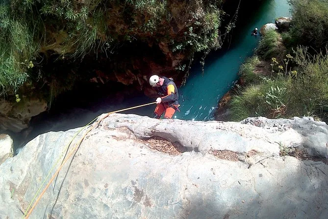 Prova l’adrenalina del canyoning a Rio Verde vicino Granada — discese in corda, tuffi in piscine smeraldo, scivolate sulle rocce lisce con una guida locale al tuo fianco. Aspettati risate (e qualche brivido), aria fresca di montagna, snack sotto gli alberi e transfer andata e ritorno per goderti l’avventura senza pensieri.