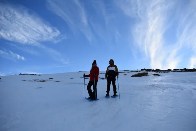 I primi passi sono stati un po’ goffi — continuavo a guardare giù per controllare che le racchette fossero ancora attaccate (lo erano). José ci ha guidati fuori dal sentiero abituale, indicando la stazione sciistica lontana in lontananza. «Non servono gli impianti», ha scherzato, «solo gambe e buona compagnia». C’è stato un momento in cui ci siamo fermati per bere e mangiare una barretta di frutta secca (inclusa, per fortuna — avevo dimenticato gli snack), e si sentiva solo il vento e il nostro respiro. Lì su è stranamente silenzioso, a parte qualche risata che rimbalzava sulle colline bianche.