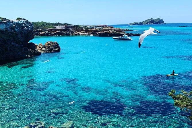 Durante le soste lungo la costa ovest di Ibiza puoi fare snorkeling, paddle board, kayak e nuotare.