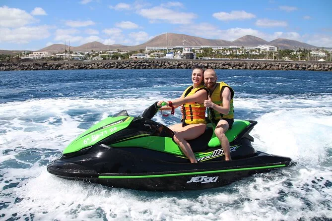 Il tour include il giubbotto di salvataggio per tutta la durata della tua avventura guidata in jet ski di 40 minuti lungo la costa di Lanzarote — basta presentarsi pronti a prendere il sole e gli spruzzi prima di tornare insieme a riva.