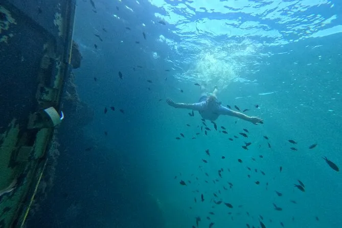 Dopo abbiamo fatto un po’ di arrampicata tra le rocce (le scarpe si sono riempite di sassolini), poi è arrivato il momento del tuffo dalla scogliera. Facoltativo, ma alla fine tutti l’hanno fatto—anche io, dopo tre tentativi falliti e qualche battuta gentile di un tedesco di nome Felix. L’acqua era fredda sulle gambe, ma a dire il vero? È stata una bella sensazione. L’ultima parte è stata lo snorkeling per cercare “tesori sommersi”—principalmente conchiglie e qualche vecchia moneta nascosta dalle guide, ma è stato divertente vedere i bambini tuffarsi come esperti.