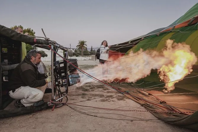 La mattina include il prelievo vicino ai mezzi pubblici di Siviglia, un volo guidato in mongolfiera sopra la campagna andalusa con l’esperto pilota Jesús González Green, seguito da una colazione tradizionale marismeña e un brindisi con cava prima del rientro in città.
