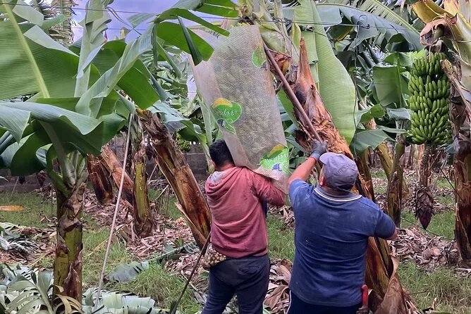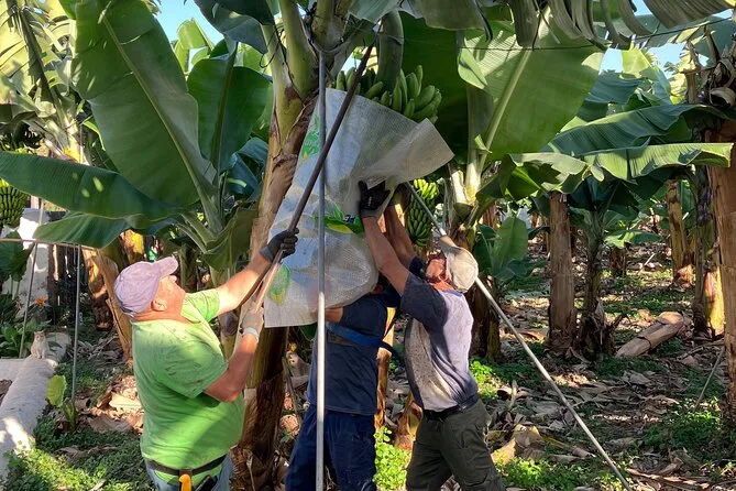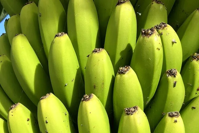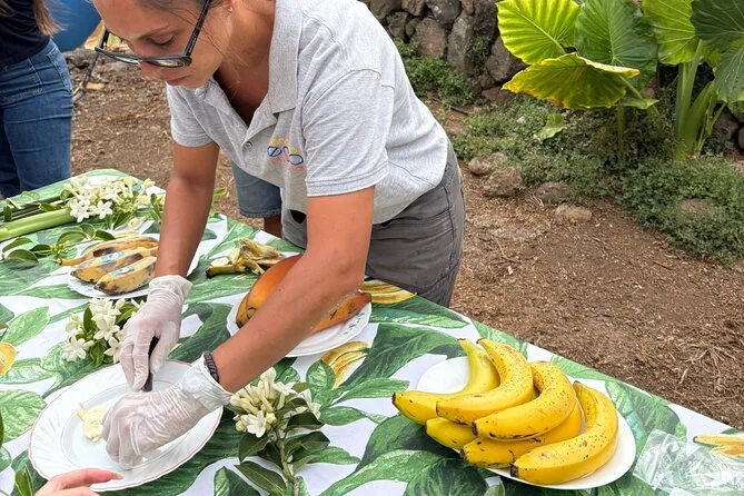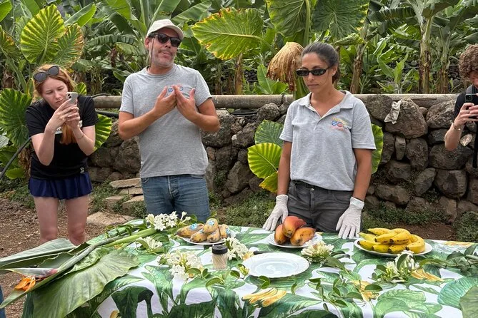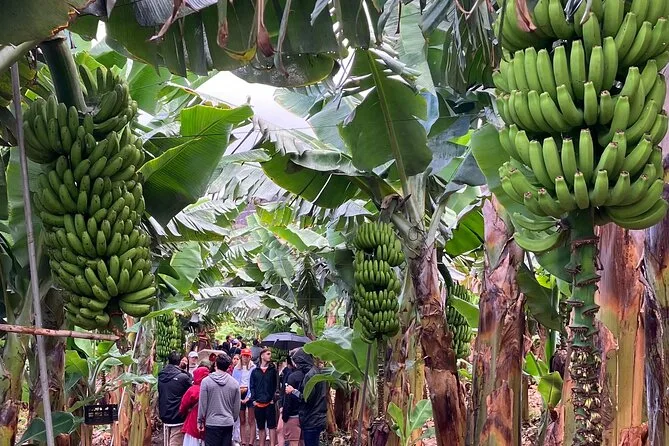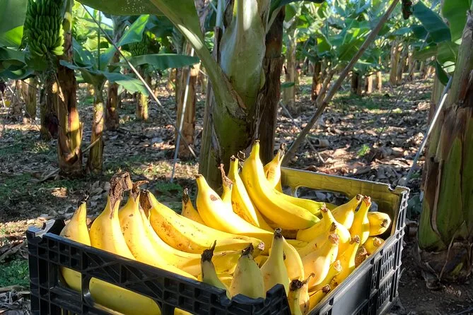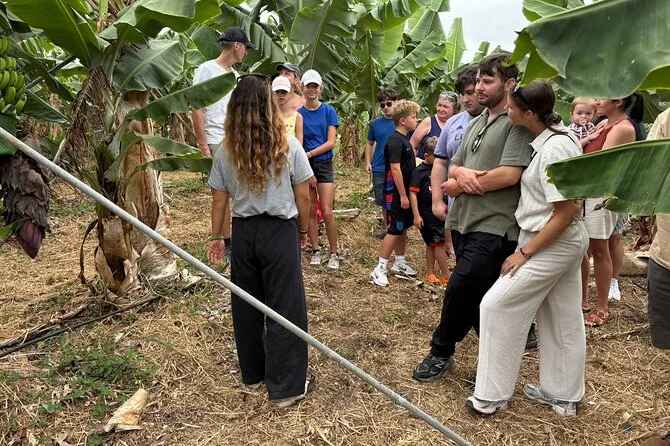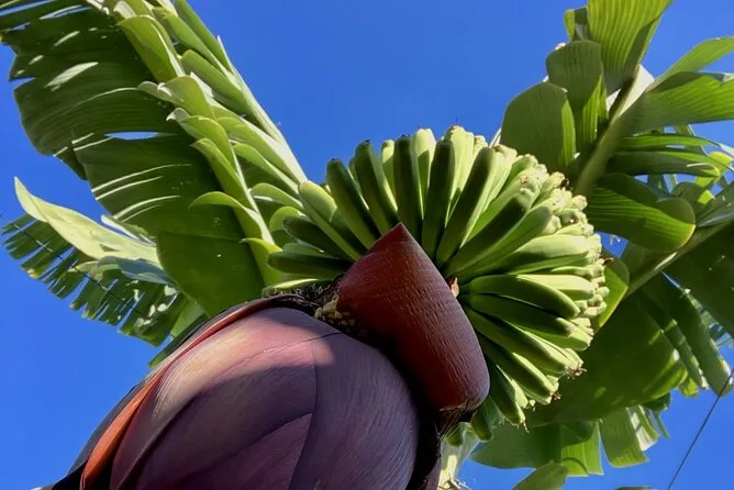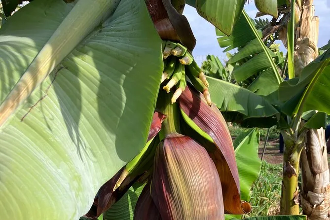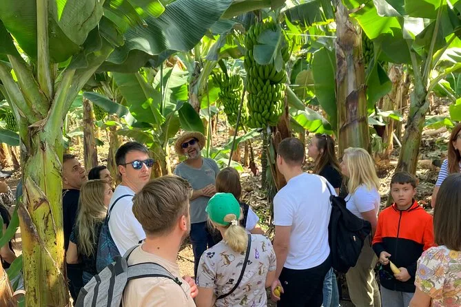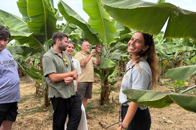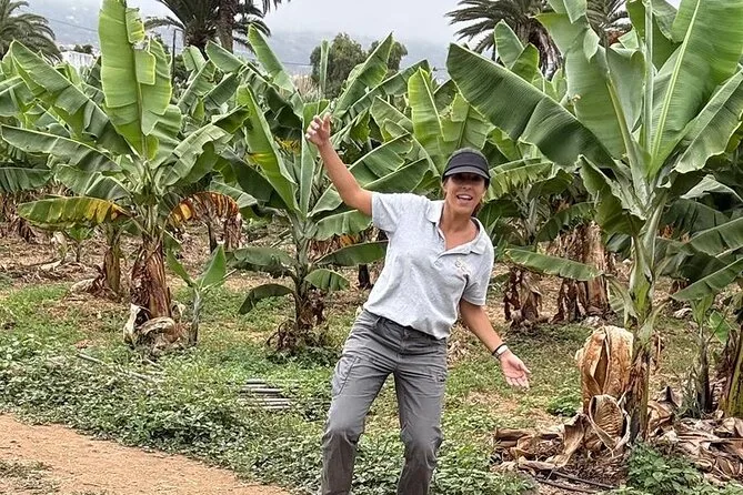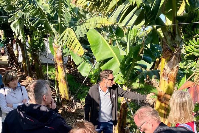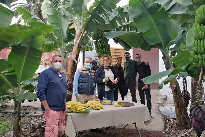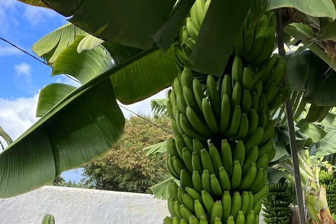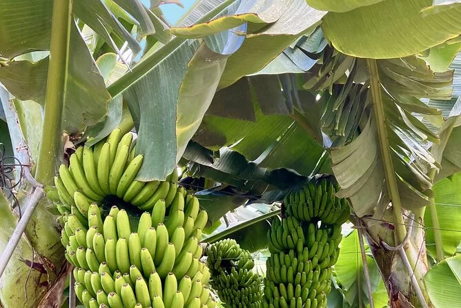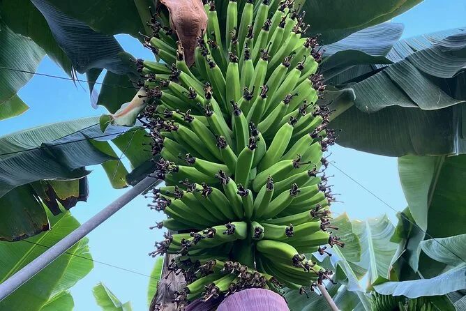 La visita include una passeggiata guidata dal proprietario attraverso una piantagione di banane ecologica a El Rincón (La Orotava), con assaggio di banane fresche direttamente dall’albero e un bicchierino di liquore locale di banana, prima di tornare a godersi la brezza salata di Tenerife.