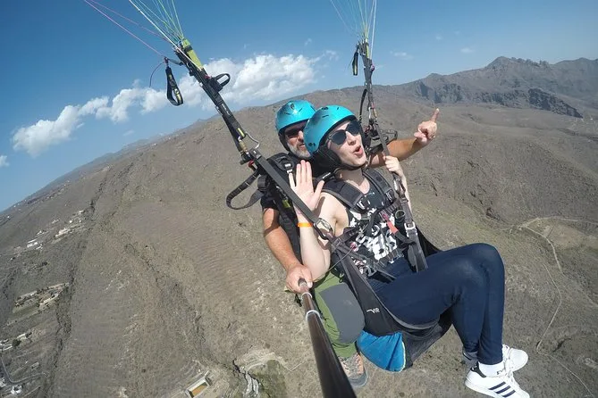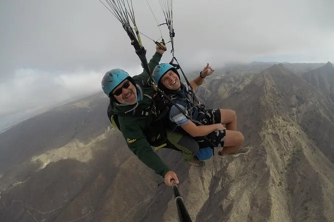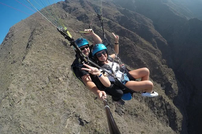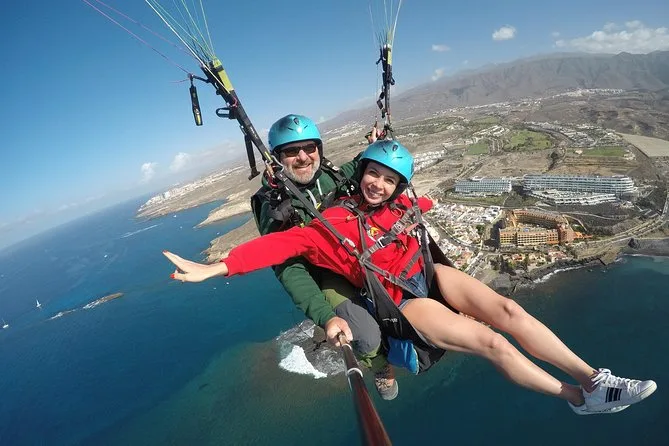 Incontra il tuo pilota locale a Costa Adeje per un volo tandem in parapendio sopra la costa sud di Tenerife. Senti il vento mentre sorvoli gole e mare, guidato passo passo da un istruttore esperto. Pickup in hotel incluso per partire rilassato — porta solo scarpe comode e nervi saldi.