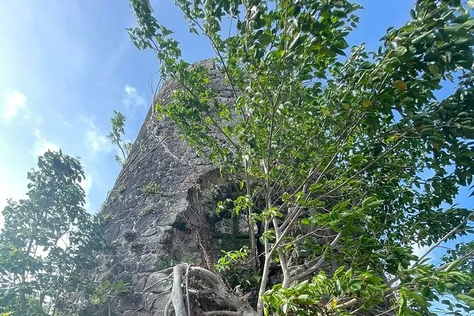 La vera avventura è iniziata quando abbiamo lasciato la strada principale e ci siamo addentrati nel villaggio di Hamilton verso le rovine dell’antico mulino dello zucchero. L’aria profumava di verde—erba schiacciata e qualcosa di dolce dagli alberi vicini. Tra i rami intravedevo Charlestown, con le sue case pastello e i panni stesi che svolazzavano al vento. Camminare tra quelle rovine era strano; sembrava quasi di sentire le storie antiche nelle pietre. Devon ci ha indicato dove un tempo c’era la casa di bollitura. Non si è tirato indietro dal raccontare la storia dell’isola—sia quella bella che quella difficile—e questo rendeva tutto più vero.