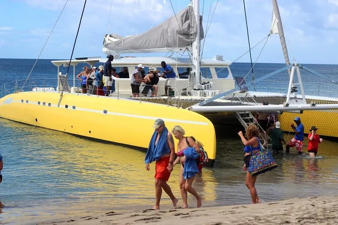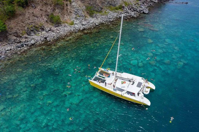 Il tuo giorno include pickup e drop-off al porto di Port Zante Marina a St Kitts, tutta l’attrezzatura per snorkeling per esplorare le barriere di Shitten Bay, bevande illimitate dall’open bar dopo il bagno (compreso il rum punch), pranzo a bordo prima della visita a Pinney’s Beach su Nevis—e tanta compagnia rilassata sia dall’equipaggio che dagli altri viaggiatori durante tutta la giornata.