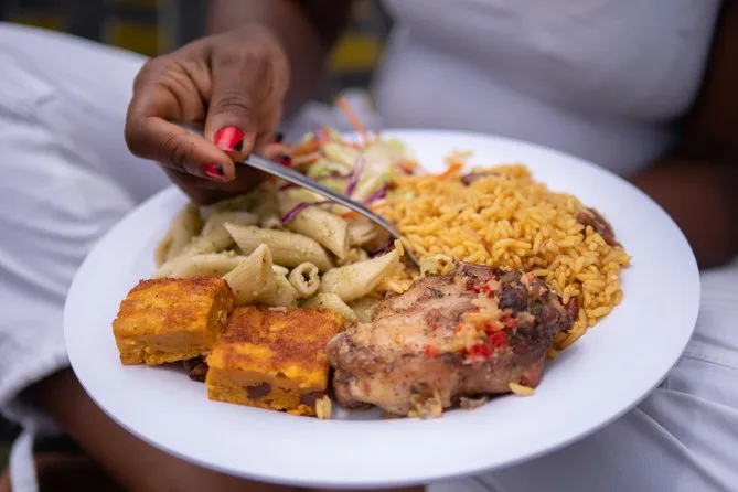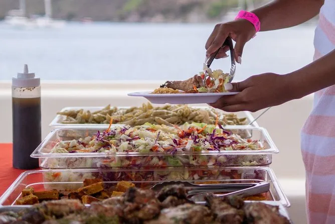 Il pranzo a bordo è semplice ma gustoso, servito dopo lo snorkeling e prima della visita a Pinney’s Beach.
