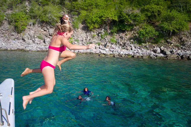 Il tuo giorno comprende pick-up e drop-off comodi dal porto di St Kitts, uso di tutta l’attrezzatura da snorkeling (con assistenza se serve), bevande illimitate dall’open bar mentre navighi o ti rilassi sul ponte, più un pranzo leggero a buffet dopo il bagno — tasse locali incluse, niente sorprese in mare.