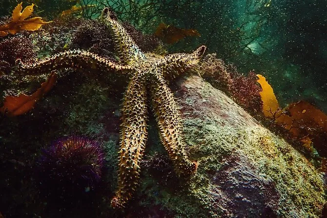 Potresti incontrare pesci, polpi, squali timidi, stelle marine, anemoni, abalone e a volte foche o pinguini, a seconda delle condizioni.