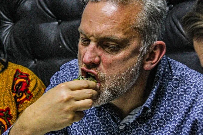 Continuavo a guardare le persone che passavano fuori—alcuni salutavano Thabo o annuivano come se vedessero questo tour gastronomico ogni giorno. A un certo punto ci ha spiegato perché gli Uber non vengono qui (“è una lunga storia,” ha detto, poi ha scrollato le spalle), quindi sì, siamo stati felici che il trasporto fosse organizzato in anticipo. L’intera giornata è stata semplice in quel senso—niente stress su dove andare o cosa ordinare. Solo storie, risate e piatti che non avevo mai sentito nominare prima.