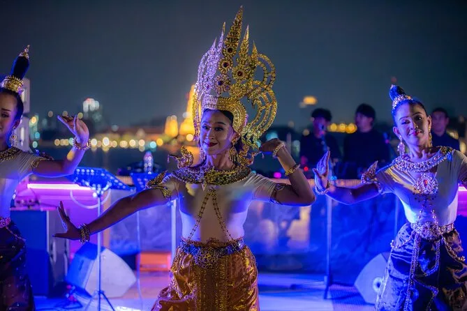 Scivola nel cuore di Bangkok con una cena sul Chao Phraya, assaporando piatti locali dal rooftop all’aperto mentre i templi si illuminano sulle due sponde. Aspettati musica dal vivo, spettacoli di danza thailandese, drink di benvenuto e tanti piccoli momenti che restano nel cuore anche dopo lo sbarco.