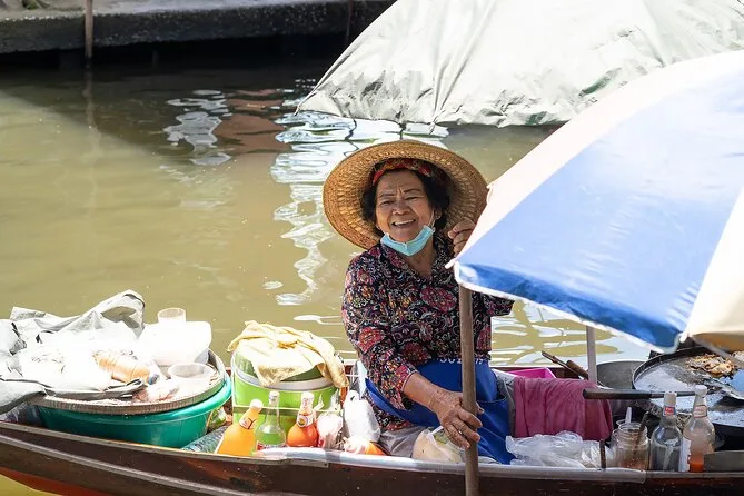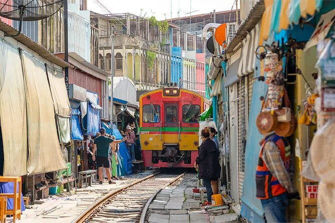 Il tuo giorno include pickup e ritorno a CentralWorld a Bangkok, tutti i trasferimenti in minivan tra il mercato galleggiante di Damnoen Saduak e il mercato ferroviario di Maeklong, acqua in bottiglia durante tutto il tour, ingressi per entrambe le attrazioni, un giro in barca long-tail lungo i canali del mercato galleggiante (circa 30-40 minuti) e una guida locale che parla inglese o cinese, sempre pronta a tenerti aggiornato — così non ti perderai mai in mezzo a tutto quel caos e colore.