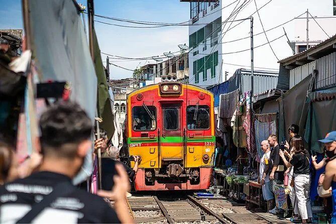 Assapora la vita del mercato galleggiante di Bangkok da una chiassosa barca long-tail, passeggia tra i venditori che chiamano tra pile di frutta, gusta un caffè al Buffalo Café e poi preparati a stare spalla a spalla mentre un vero treno attraversa il mercato di Maeklong. È caotico, rumoroso e un po’ magico — ti ritroverai a sorridere a sconosciuti.