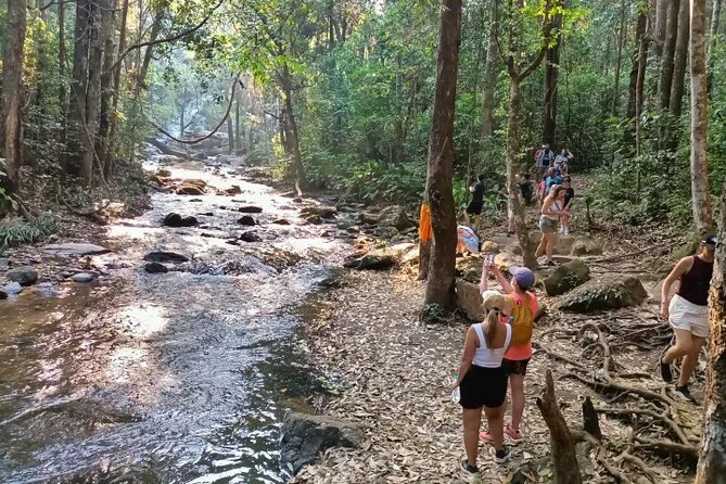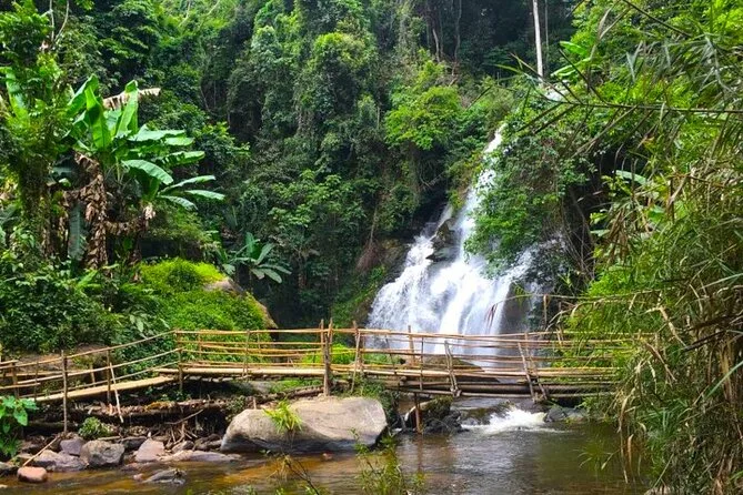 Il tuo giorno include il pick-up in hotel a Chiang Mai con veicolo climatizzato, acqua in bottiglia durante tutto il viaggio, ingresso al Living Green Elephant Sanctuary con momento di alimentazione ravvicinata (senza cavalcate), visite guidate alle pagode reali di Doi Inthanon e al mercato Hmong, pranzo locale prima del trekking sul sentiero Pha Dok Seaw con guida in inglese, e infine un caffè fresco nel villaggio di Ban Mae Klang Luang prima del rientro.