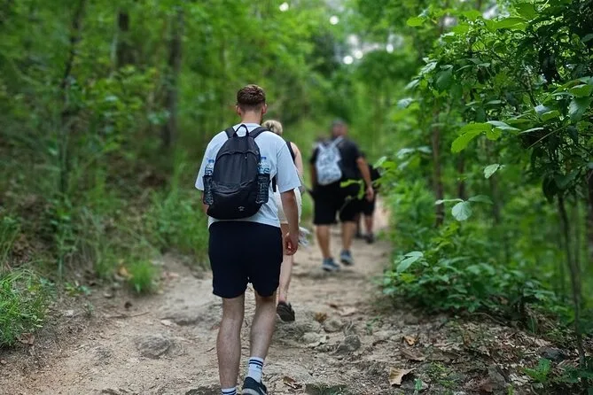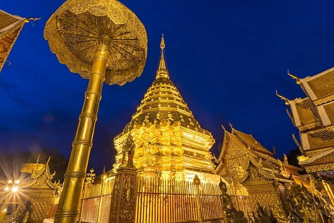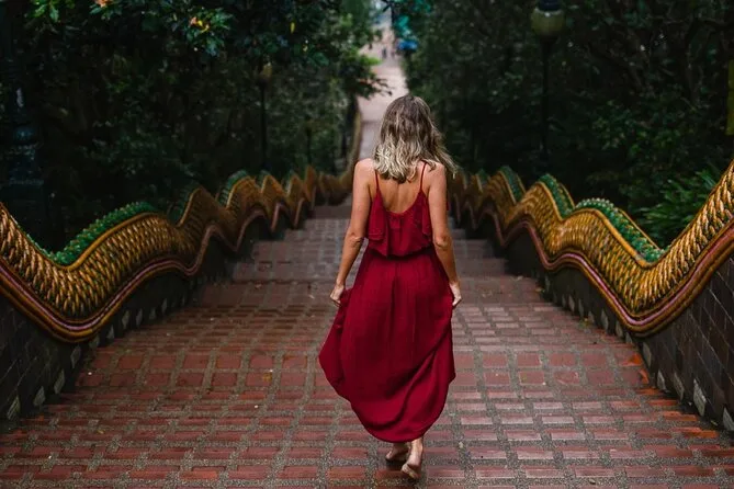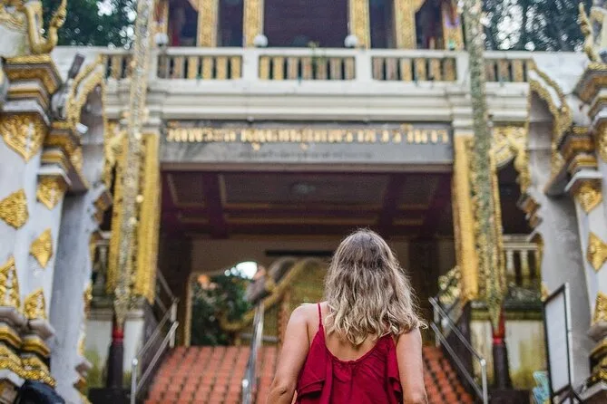 Cammina lungo il Monk’s Trail tra foreste di bambù fino al tranquillo Wat Pha Lat, poi sali sul classico songthaew rosso con la tua guida locale e raggiungi il tempio dorato di Doi Suthep per una vista mozzafiato sulla città. Preparati a sudare, ridere, vivere momenti di pace tra statue antiche e forse trovare il tuo angolo di serenità.