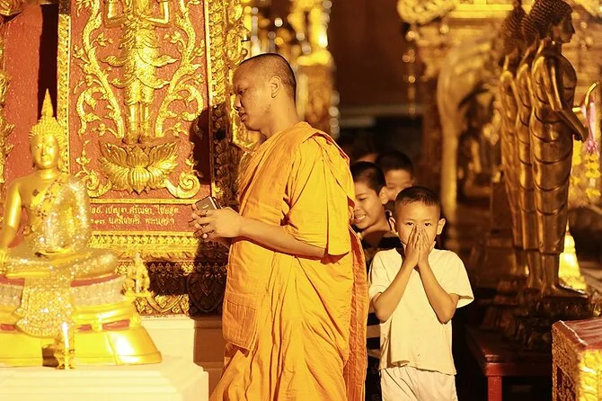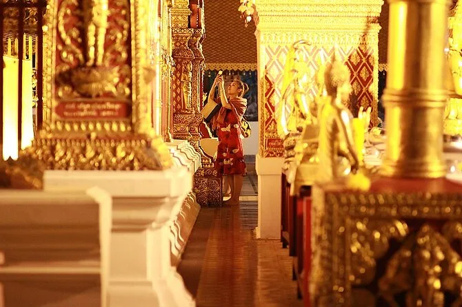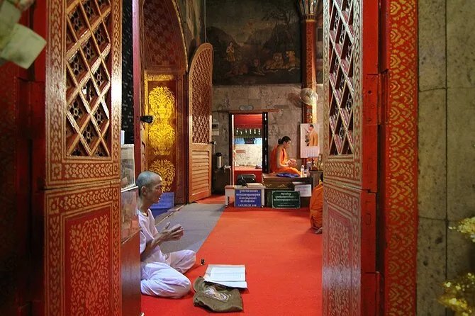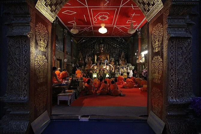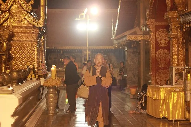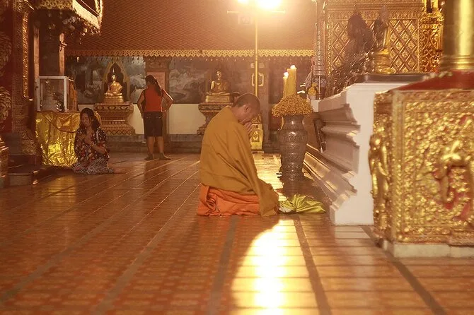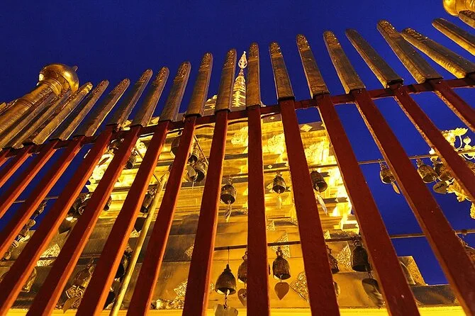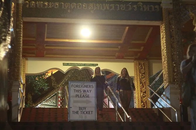 La tua serata comprende il pickup e drop-off in hotel o guesthouse a Chiang Mai, tutti gli ingressi ai due templi, trasporto in van confortevole con aria condizionata e autista, assicurazione viaggio per la tua tranquillità e la guida locale autorizzata che parla inglese e condivide storie lungo il percorso.