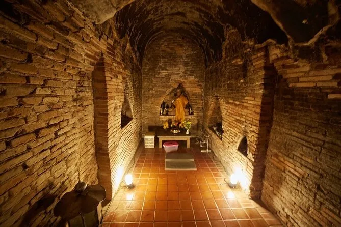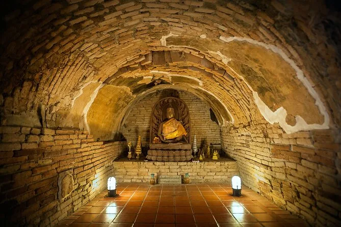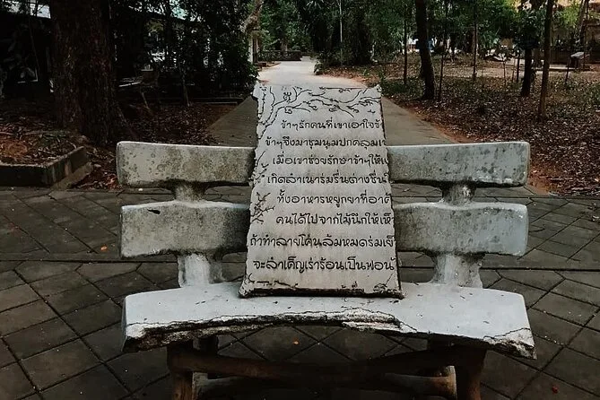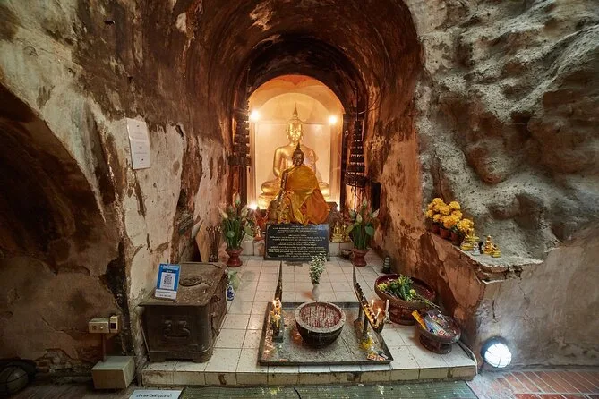 Siamo stati prelevati dal nostro guesthouse proprio mentre il cielo iniziava a cambiare colore—una di quelle serate a Chiang Mai in cui l’aria diventa più fresca dopo una giornata calda. La nostra guida, Noi, ci ha accolti con un dolce “sawasdee ka” e un sorriso che ha subito messo a proprio agio. La prima tappa è stata Wat Umong, nascosto tra gli alberi ai margini della città. Avevo letto dei suoi tunnel, ma non immaginavo quanto fossero freschi e naturali sotto i piedi, né quanto l’incenso riempisse l’aria nonostante ci fosse poca gente. Sulle pareti c’erano vecchi murales—sbiaditi ma proprio per questo più autentici—e Noi ci ha raccontato storie di monaci che meditavano lì secoli fa. Ho cercato di immaginare quel silenzio profondo.