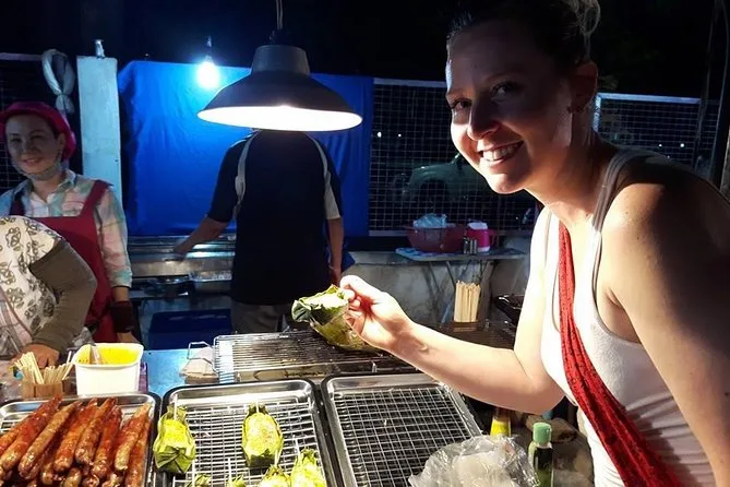 Esplora i mercati notturni di Chiang Mai in piccolo gruppo, assaggiando specialità del nord Thailandese come gnocchi di cocco e stinco di maiale stufato. Con una guida locale che ti aiuta a ordinare in thai, ti divertirai con nuovi sapori prima di tornare in hotel soddisfatto e forse più coraggioso per il prossimo pasto.