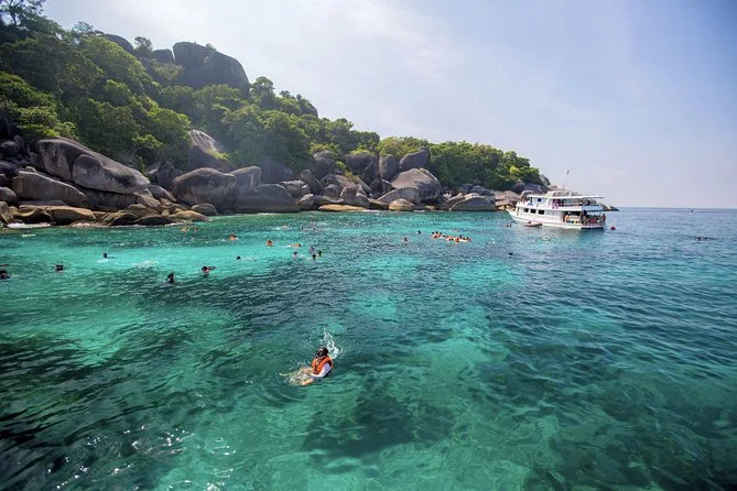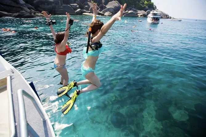 Parti presto da Phuket con il pickup in hotel e raggiungi le Isole Similan in motoscafo per snorkeling guidato nei punti migliori della barriera. Gusta un pranzo thailandese sulla sabbia di Princess Bay, osserva fauna rara lungo i sentieri e rilassati o fai trekking a Donald Duck Bay prima del rientro—carico di sole e felicità salata.