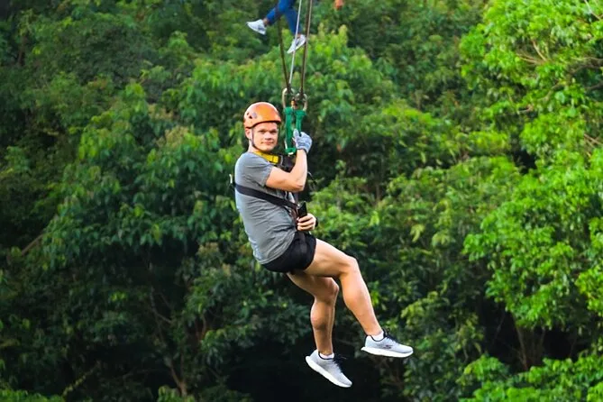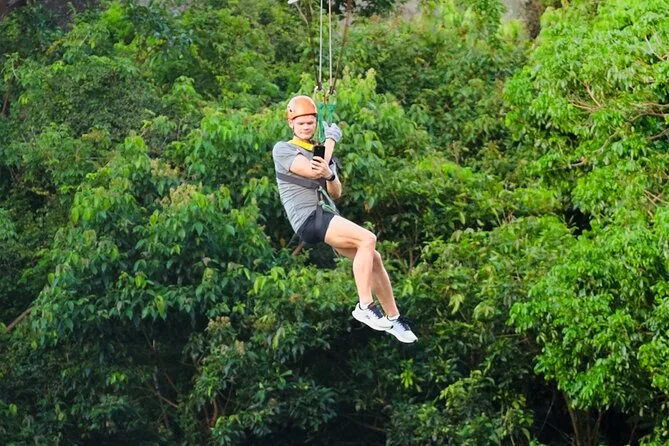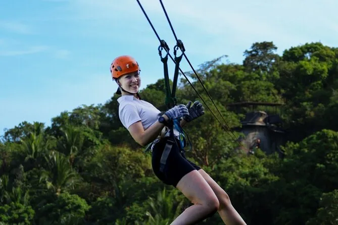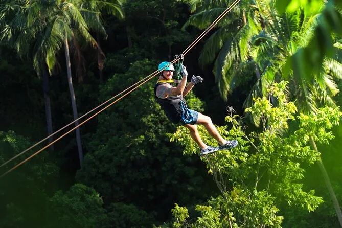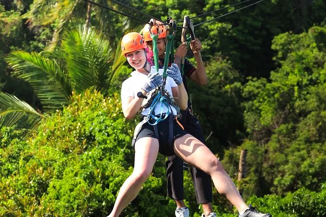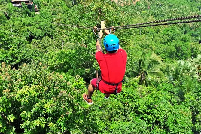 Salirai in teleferica sulle colline di Lamai, poi volerai in zipline sopra le palme con vista sulla costa di Koh Samui. Dopo, rilassati al bar panoramico o prova il divertente fish spa vicino a Valentine Stone. Risate, sapori locali e ricordi che restano nel cuore.