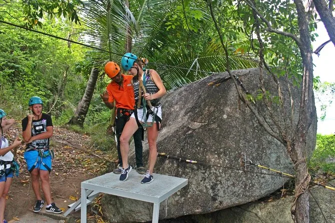 L’esperienza include il biglietto per la teleferica che sale al Lamai Viewpoint, tutta l’attrezzatura per il zipline e le imbracature di sicurezza. Dopo puoi goderti un fish spa vicino a Valentine Stone e rilassarti al bar o ristorante sul posto, tutto con orari flessibili in base al tuo arrivo.