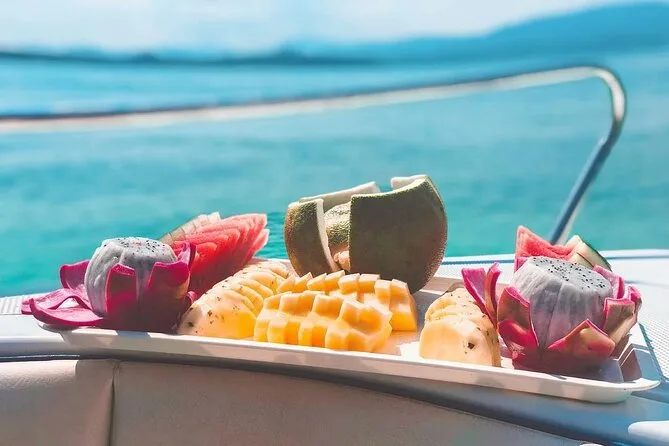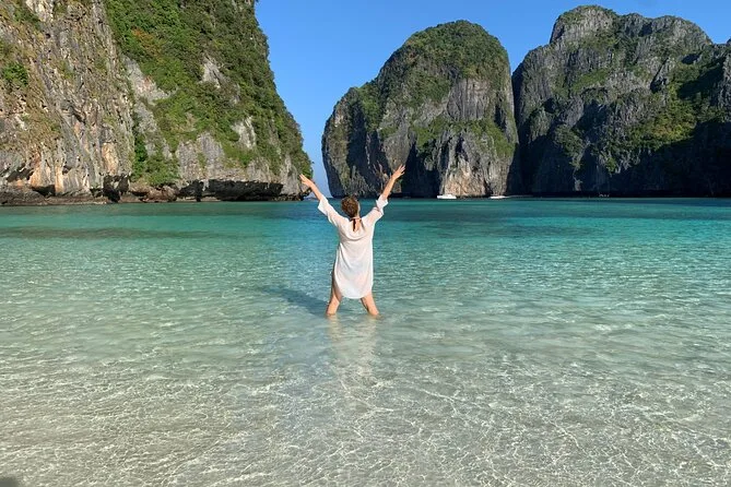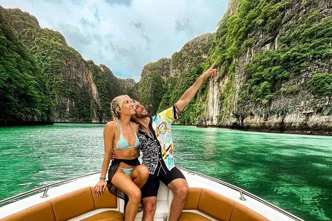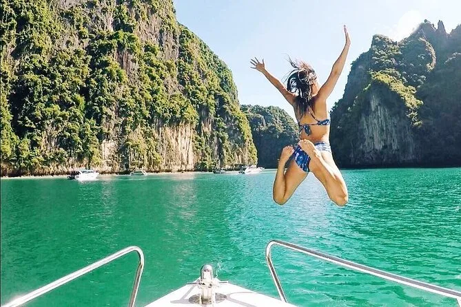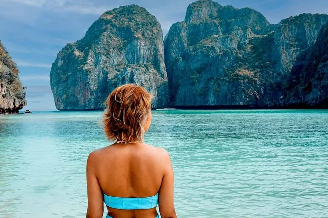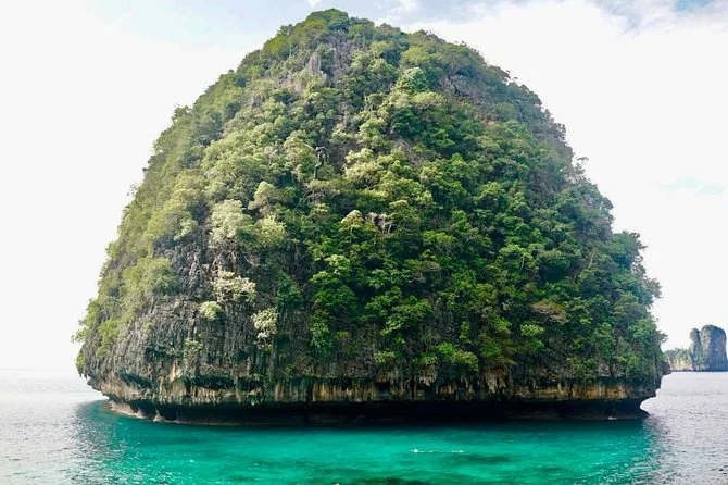 La giornata comprende tutto: partenza dal porto di Phuket all’alba con caffè o tè a bordo; colazione picnic a Maya Bay o Bamboo Island a seconda della stagione; due soste guidate per snorkeling con tutta l’attrezzatura fornita; visite a Pileh Lagoon, Monkey Beach (dal battello), Viking Cave; tempo libero per rilassarsi sotto le palme su Bamboo Island o Koh Rang Yai; bevande analcoliche, frutta fresca come snack—e infine pranzo in un pool club locale prima del rientro nel pomeriggio.
