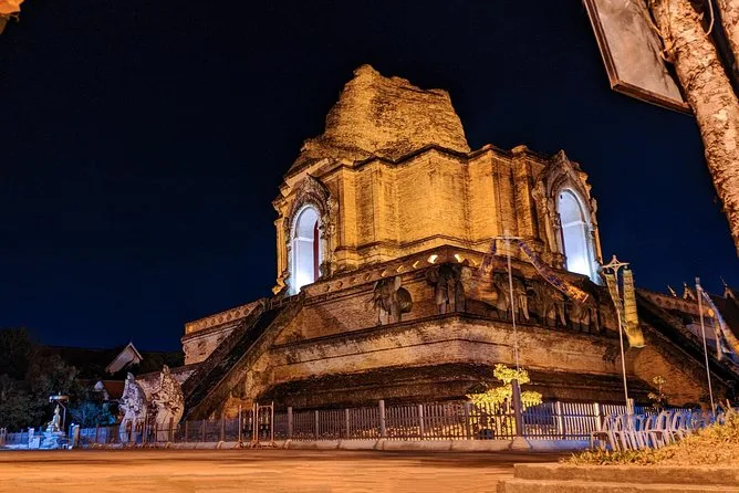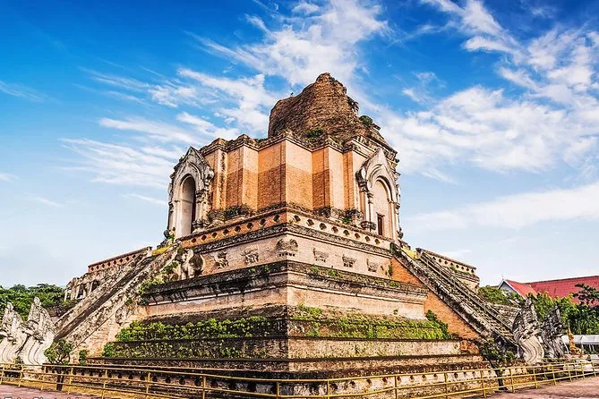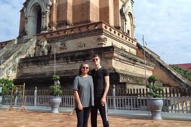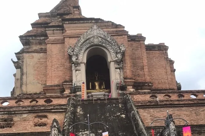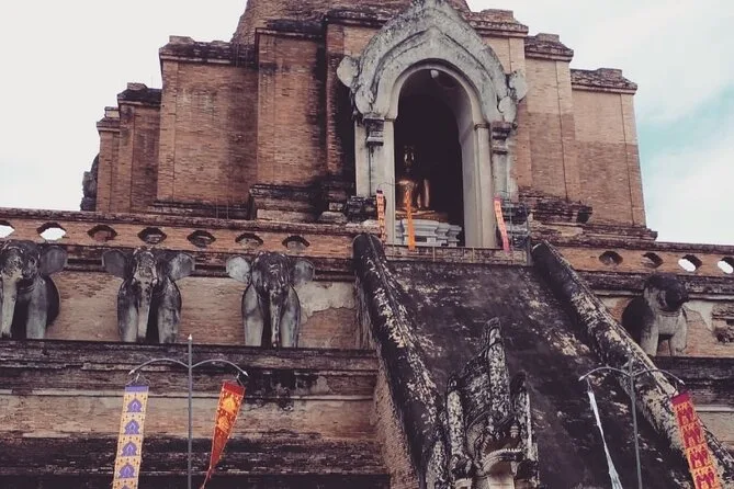 Camminerai tra cortili di mattoni antichi a Wat Chedi Luang, salirai a Doi Suthep per ammirare la città e le campane del tempio, poi troverai pace vicino alle cascate di Wat Pha Lat — tutto con pick-up in hotel e guida in inglese che fa vivere la storia di Chiang Mai.