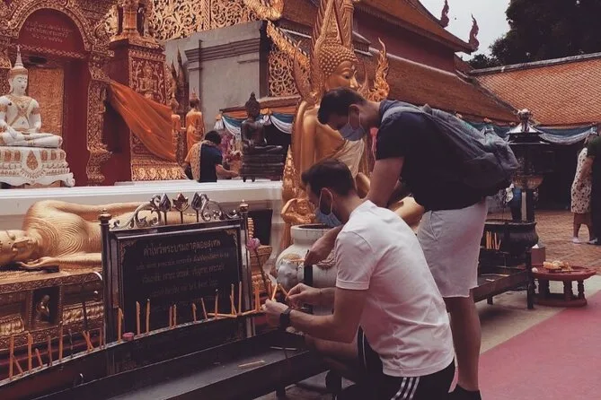 Il tuo giorno include pick-up e rientro in hotel a Chiang Mai, trasporto tra i templi con guida in inglese che racconta storie locali lungo il percorso, tutte le entrate ai templi incluse così non devi preoccuparti di contanti, più acqua in bottiglia per rimanere idratato mentre esplori ogni luogo prima di tornare in città.
