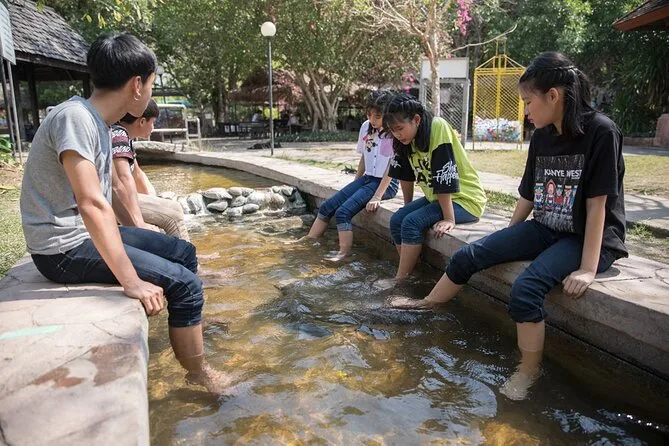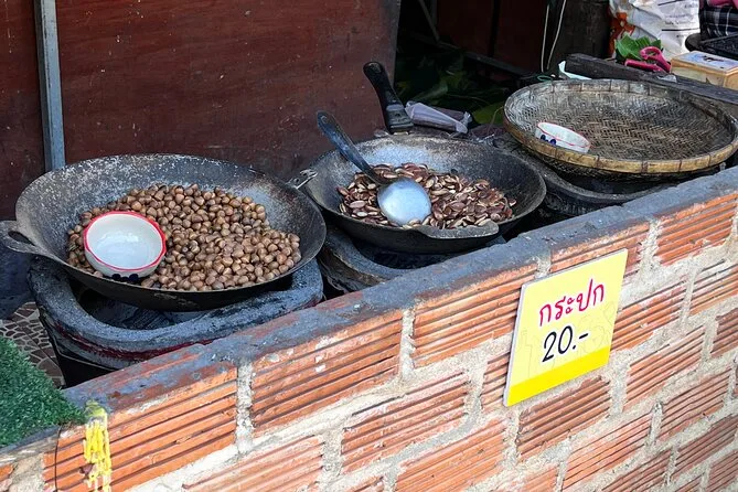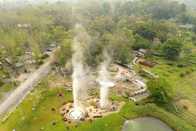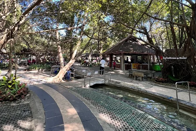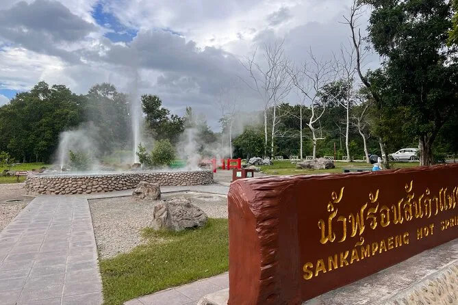L’ultima tappa è stata alle sorgenti termali di San Kamphaeng. L’odore dei minerali ti colpisce prima ancora di vedere il vapore che si alza dalle vasche. La gente del posto era raccolta intorno a cesti di uova, calcolando il tempo giusto per cuocerle nell’acqua bollente. Ho provato anch’io—le ho mangiate con un goccio di salsa di soia da una piccola bustina di plastica. Ci sono zone per immergere solo i piedi o per un bagno completo nelle vasche minerali; io ho scelto il pediluvio mentre guardavo famiglie fare picnic sotto gli alberi. Uscendo, abbiamo curiosato tra le bancarelle che vendevano sciarpe tessute a mano e i famosi ombrelli di Bo Sang dipinti con colori vivaci. L’intera giornata è stata come un vero assaggio della vita nel nord della Thailandia—niente fretta, solo autenticità e piccole sorprese.