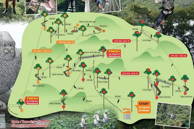Il percorso zipline dura generalmente tra 2 e 3 ore, a seconda della dimensione del gruppo e del ritmo.