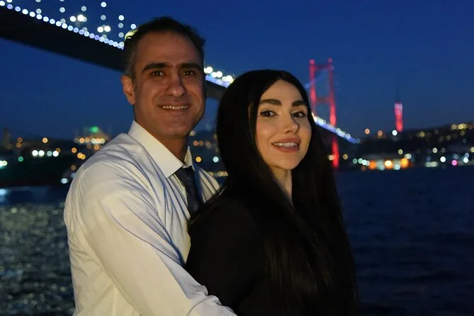 La tua serata include il pick-up prima dell’imbarco a Viaport Marina, una crociera di lusso di 2 ore sul Bosforo con musica dal vivo al violino per creare l’atmosfera, un bicchiere di vino a persona più frutta fresca di stagione e frutta secca—mentre la guida locale ti indica palazzi storici e ponti famosi illuminati dalle luci della città.