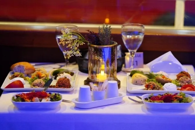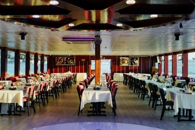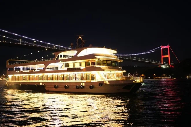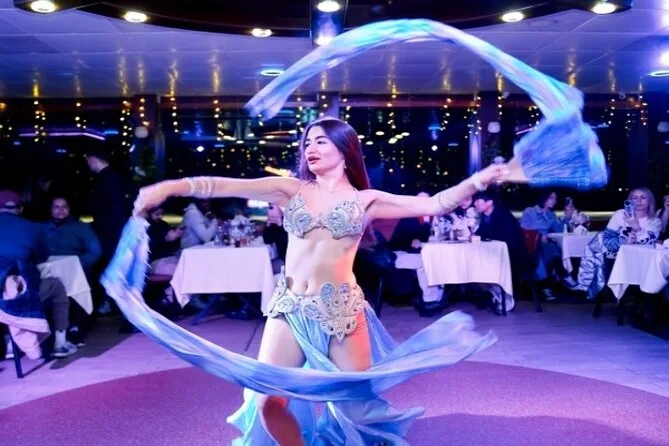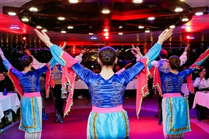 Scivola tra palazzi e moschee con una crociera serale sul Bosforo da Istanbul, con tavolo privato per la cena e spettacoli turchi dal vivo intorno a te. Assapora piatti locali mentre le luci della città illuminano due continenti, poi lasciati trasportare da musica e risate prima di tornare a riva.
