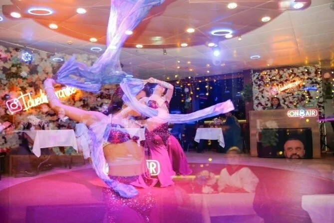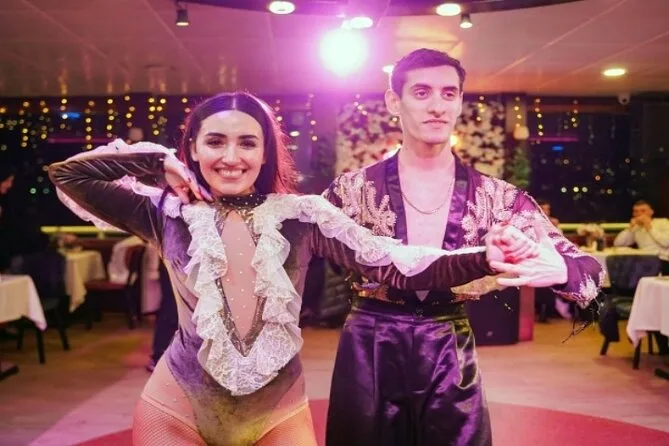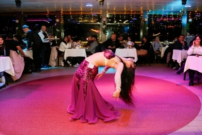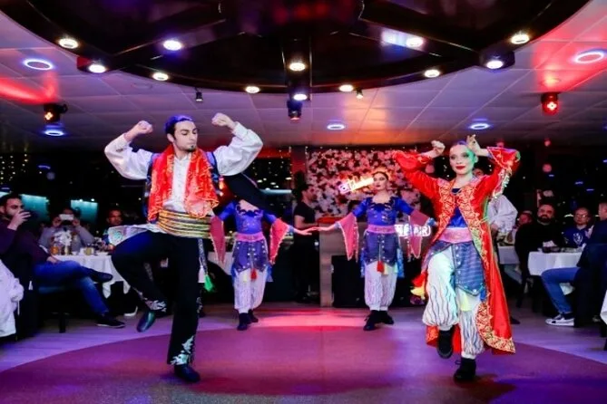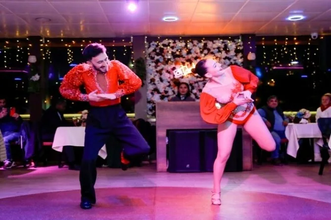 La serata include spettacoli di danza del ventre, danze popolari anatoliche, performance di flamenco latino e musica tradizionale turca con un intrattenitore coinvolgente.