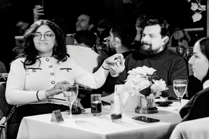 Abbiamo avuto un tavolo tutto per noi vicino al finestrino (ci hanno detto che ogni gruppo ne ha uno), un mix perfetto tra eleganza e informalità. La cena è arrivata a ondate — prima i meze freddi (la melanzana affumicata era dolce e saporita), poi il pane caldo che sprigionava vapore appena lo spezzavi. Ho provato a pronunciare “çoban salatası” nel modo giusto; Ece ha riso e mi ha aiutato, sciogliendo l’imbarazzo. A un certo punto, una ballerina del ventre ha iniziato a muoversi tra i tavoli, seguendo il ritmo di un tamburo selvaggio. La gente batteva le mani — anche qualche turista timido è stato trascinato a ballare. Non sono un grande ballerino, ma era impossibile non sorridere.