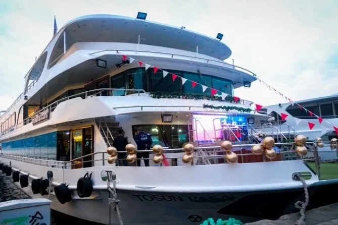 La tua serata comprende il pick-up opzionale dagli hotel nei quartieri centrali di Istanbul come Sultanahmet o Taksim (se scelto), un tavolo privato su una barca ben curata che naviga lungo il Bosforo passando per siti storici come il Palazzo Dolmabahçe e la Fortezza di Rumeli; una cena turca a più portate con bevande analcoliche illimitate o alcolici locali limitati; oltre a spettacoli dal vivo — danza del ventre, danze popolari regionali e performance di flamenco latino — prima del rientro a terra in tarda serata.