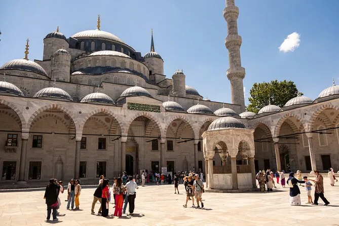 Il tuo giorno include un tour a piedi di 2,5 ore in piccolo gruppo con guida locale esperta attraverso Piazza Sultanahmet, visite interne alla Moschea Blu e all’Hagia Sophia con biglietti prenotati per un ingresso più veloce all’Hagia Sophia, più consigli esclusivi lungo il percorso — se arrivi in crociera, puoi anche scegliere di partire dal porto di Galata.