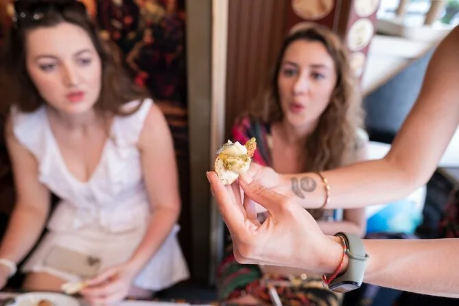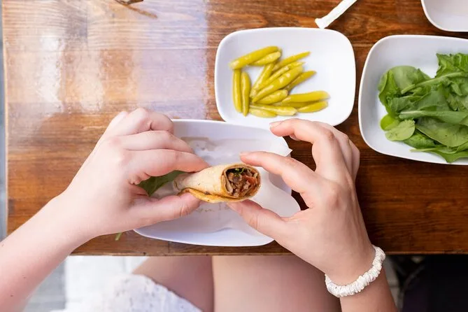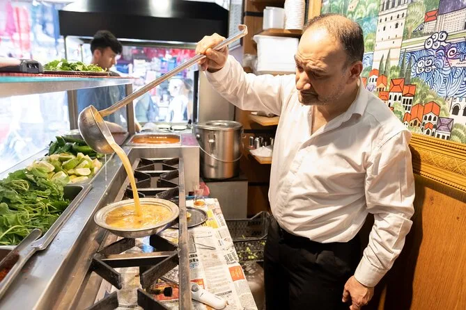 Il tuo giorno inizia incontrando la guida appassionata di cibo inglese vicino al Mercato delle Spezie di Istanbul per una colazione turca tradizionale con tè o caffè, prima di salire sul traghetto per Kadıköy. Sono incluse tutte le degustazioni — colazione, snack come baklava e tantuni — più porzioni da pranzo in diversi locali e diverse bevande tipiche. La guida ti fornirà anche il biglietto per il traghetto di ritorno, così potrai tornare quando vuoi.