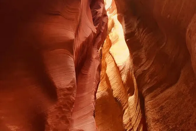 Camminerai tra i tortuosi slot canyon di Antelope Canyon X con una guida Navajo che racconta storie e ti aiuta a scoprire forme nascoste nella roccia. Aspettati meno folla rispetto a Upper e Lower Antelope Canyon, momenti perfetti per foto con la luce che illumina la roccia rossa e tanto tempo per goderti il silenzio profondo di questo canyon.