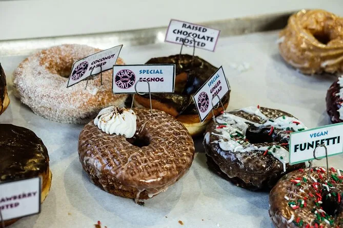 Assapora la tradizione delle ciambelle di Boston — dai classici glassati al miele di Kane’s alle calde cider donuts del Public Market, fino alla leggendaria Boston cream nel North End. Risate con la guida, storie locali che non trovi online e tante occasioni per rubare un altro morso se sei veloce.