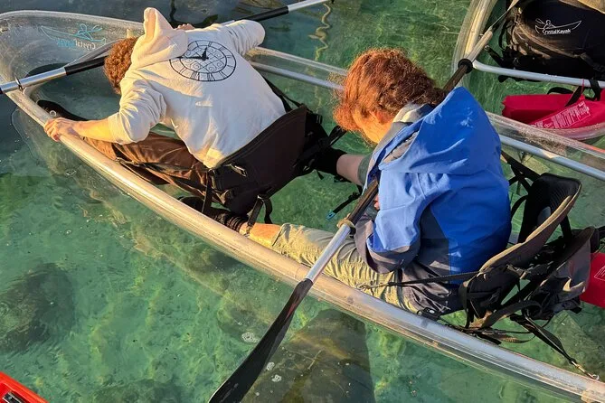 Il tuo giorno include l’uso di un kayak trasparente con pagaia e giubbotto salvagente forniti dalla guida; dry bag per telefono o piccoli oggetti; più un pacchetto di foto professionali gratuite così puoi concentrarti a pagaiare (o a fissare i manatees) senza doverti preoccupare di scattare foto, tornando rilassato—e forse un po’ abbronzato.
