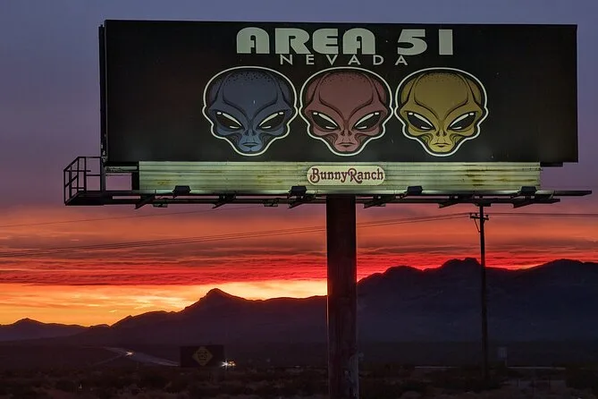 Siamo partiti da Las Vegas prima dell’alba, ancora mezzi addormentati, e quando siamo arrivati all’Alien Center (quello con l’insegna al neon verde e le tazze UFO), ero abbastanza sveglio da ridere dei souvenir. La nostra guida—David, credo?—conosceva ogni storia strana su quel posto. L’aria secca e tagliente del deserto si sentiva sulla pelle anche dentro il van. Poi siamo arrivati a Rhyolite. Solo muri di cemento rotti e finestre vuote, ma in qualche modo non sembrava così desolato come pensavo. C’è anche un’installazione artistica all’aperto—figure giganti e spettrali in bianco. Ho provato a fare una foto, ma non rendeva l’atmosfera strana di stare lì con il vento che tirava la camicia.