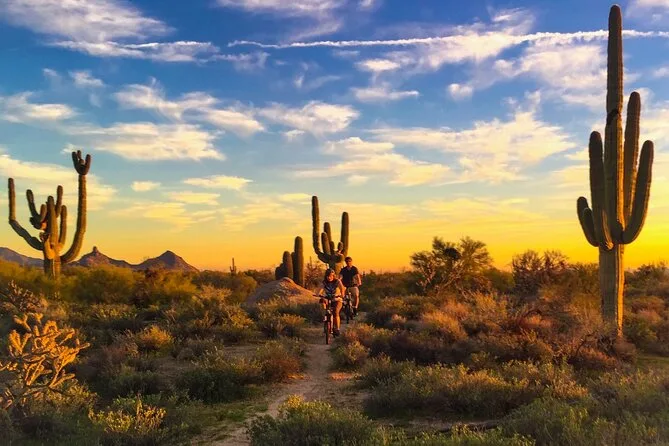 Pedalerai in e-bike nel deserto Sonorano dell’Arizona con una guida locale che conosce ogni montagna per nome. Aspettati risate per cactus pronunciati male, soste per foto e acqua, e storie autentiche sulla terra. Una giornata attiva con tutta l’attrezzatura inclusa — e momenti di silenzio nel deserto che non dimenticherai.