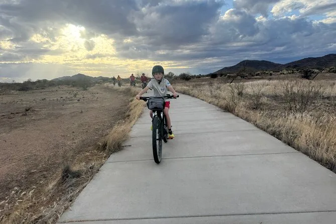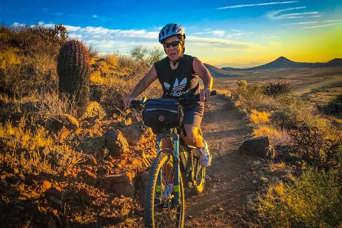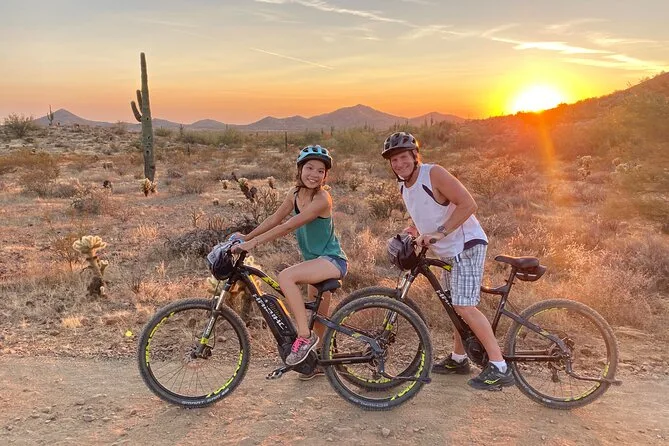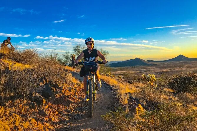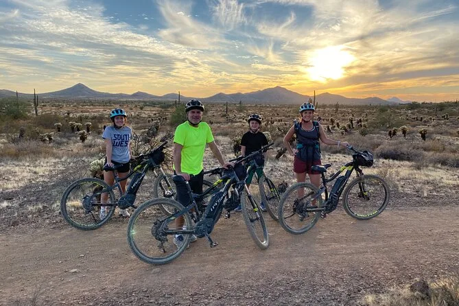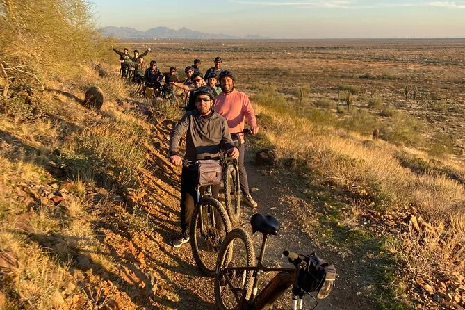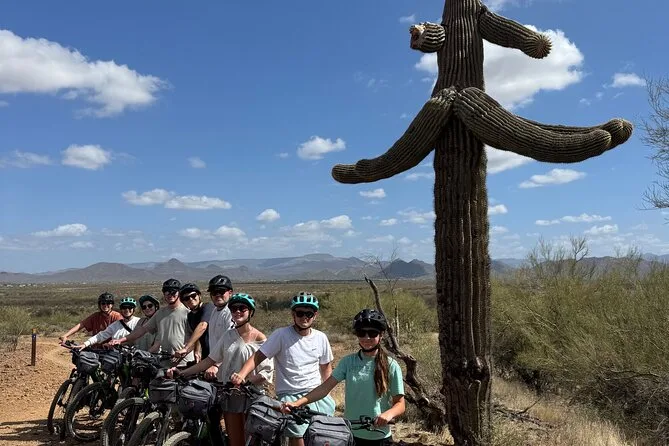 La tua giornata include l’uso di una e-bike di alta qualità Classe 1 con motori Bosch o Yamaha (una pedalata super fluida), casco per la sicurezza, borraccia per affrontare il sole dell’Arizona e una borsa da bici per i tuoi effetti personali — il tutto guidato da qualcuno che conosce questi sentieri come le sue tasche.